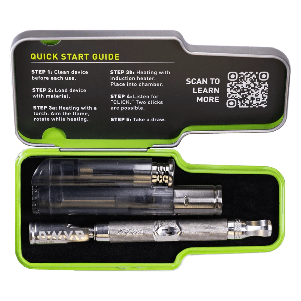 The DynaVap M7 XL has been upgraded with enhanced aesthetics and functionalities, including an XL mouthpiece and elongated vapor pathway. A new finless tip enables more uniform extraction, while reduced heat transfer from tip to stem ensures improved comfort. The device also features a streamlined design and textured surface for better grip. Its new airport and pivot rocker design add convenience. Made from stainless steel, the M7 XL is both durable and visually appealing. The XL mouthpiece and condenser only enhance its premium and refined appearance, setting it apart from other vaporizers in the market.