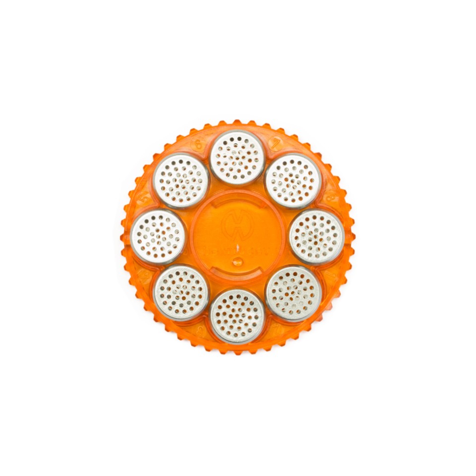 Plastic magazine with 8 dosing capsules for Storz & Bickel vaporizers.