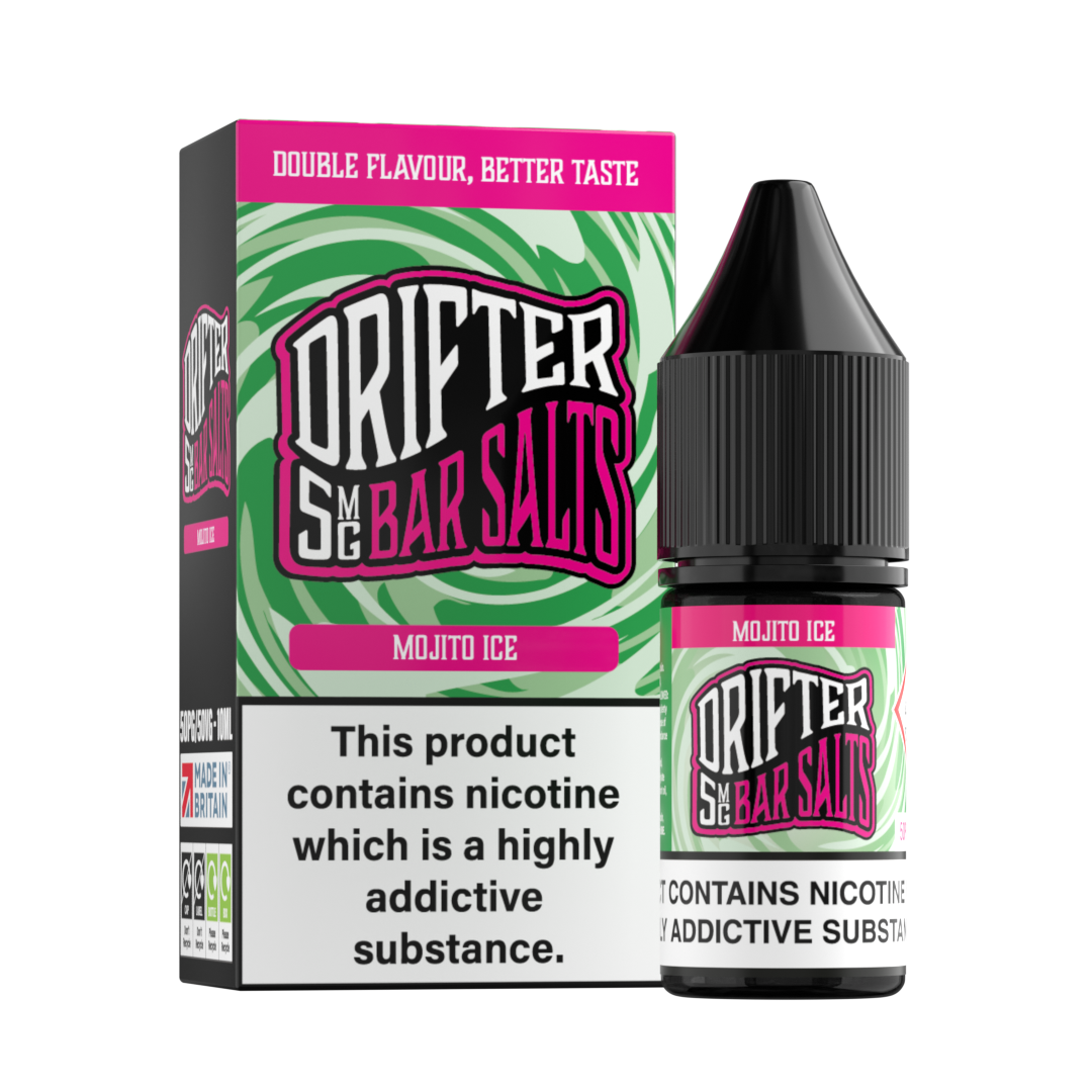 The Drifter Bar Salt Mojito Ice premium nicotine salt e-liquid is expertly crafted for a smooth, satisfying vaping experience. Offering a unique blend of bold, juicy fruits, refreshing menthol twists, and nostalgic sweet notes, delivering crisp, clean, and refreshingly smooth vapour perfect for everyday use.