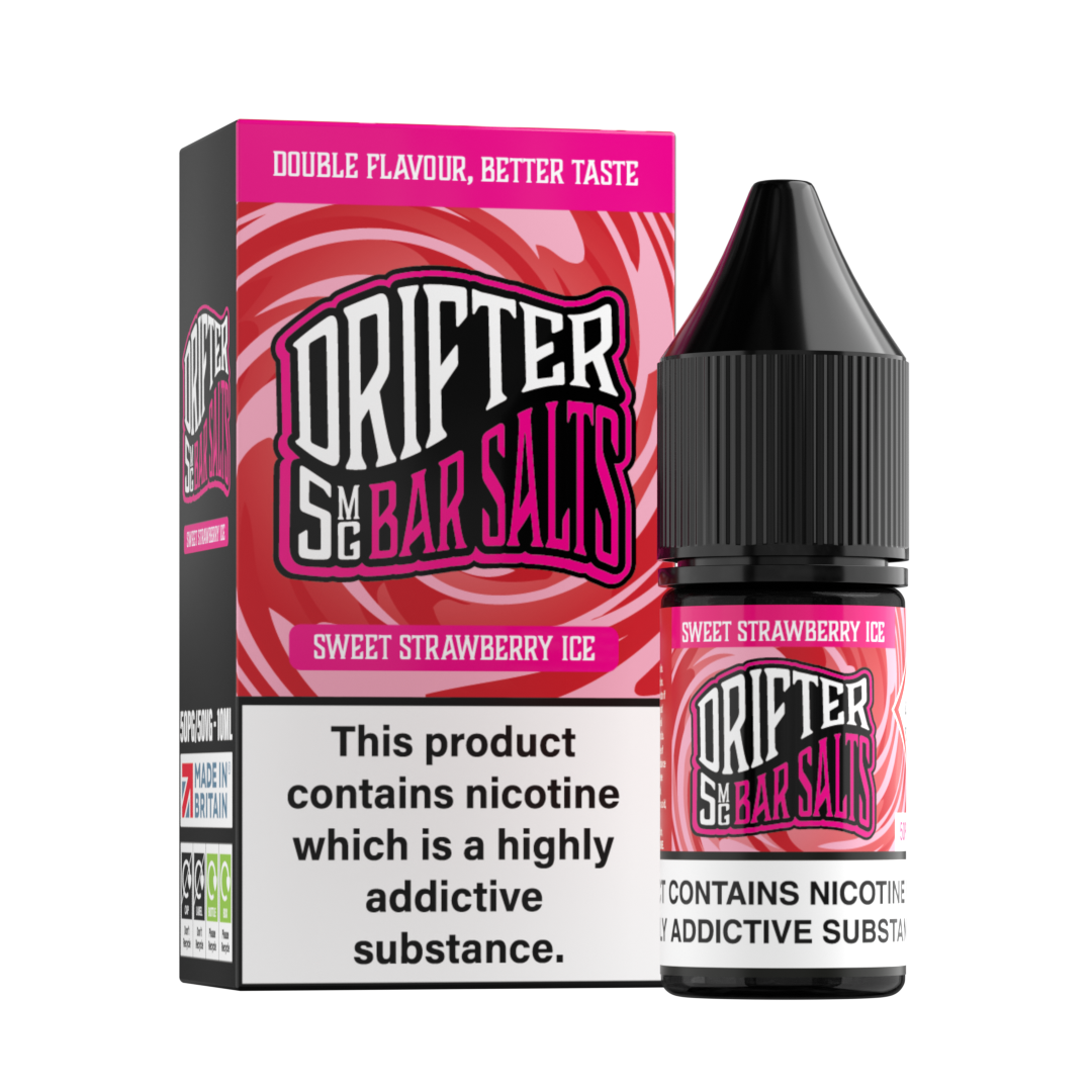 The Drifter Bar Salt Sweet Strawberry Ice premium nicotine salt e-liquid is expertly crafted for a smooth, satisfying vaping experience. Offering a unique blend of bold, juicy fruits, refreshing menthol twists, and nostalgic sweet notes, delivering crisp, clean, and refreshingly smooth vapour perfect for everyday use.