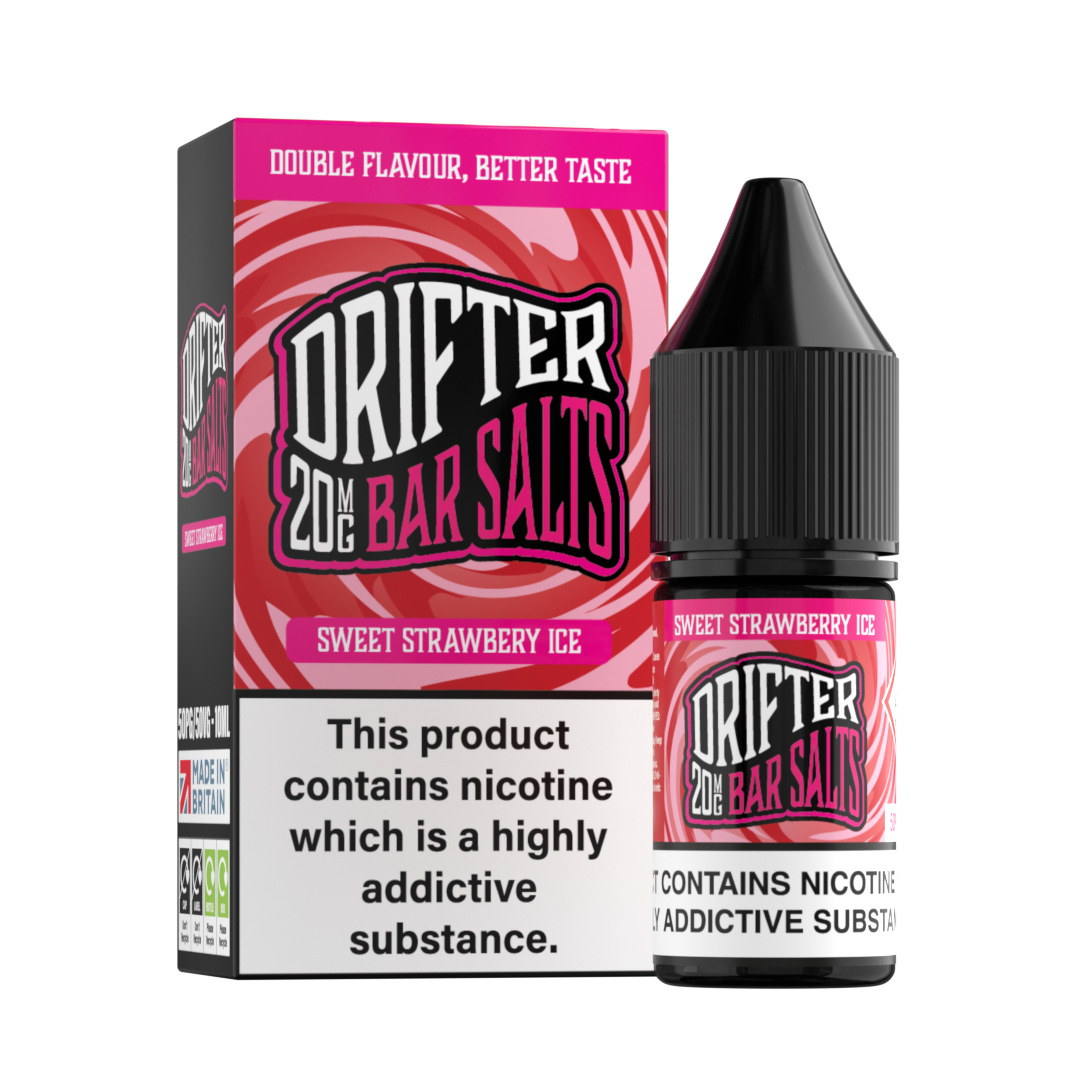 The Drifter Bar Salt Sweet Strawberry Ice premium nicotine salt e-liquid is expertly crafted for a smooth, satisfying vaping experience. Offering a unique blend of bold, juicy fruits, refreshing menthol twists, and nostalgic sweet notes, delivering crisp, clean, and refreshingly smooth vapour perfect for everyday use.